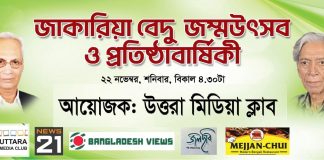 উত্তরা মিডিয়া ক্লাবের প্রতিষ্ঠা বার্ষিকী ও জাকারিয়া-বেদু জন্মোৎসব উদযাপিত