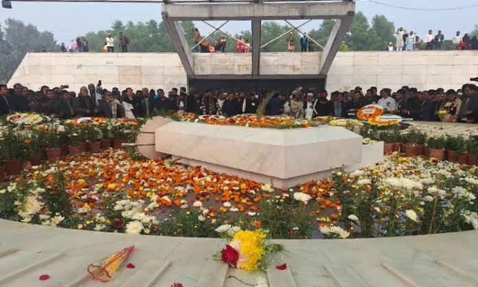 ফুলে ঢেকে যাচ্ছে কবরের বেদি। কেউ মাথা নিচু করে দীর্ঘ সময় দাঁড়িয়ে আছেন, কেউ চোখ বন্ধ করে দোয়ায় মগ্ন। পাশের মাইক থেকে ভেসে আসছে পবিত্র কোরানের তিলাওয়াত। সেই ধ্বনি যেন কুয়াশার মধ্যেও হৃদয়ে পৌঁছে যাচ্ছে।