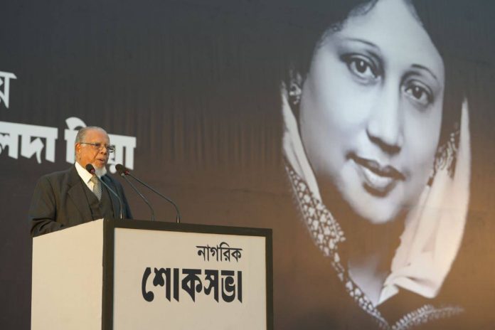 শুক্রবার (১৬ জানুয়ারি) রাজধানীর সংসদ ভবনের দক্ষিণ প্লাজায় এই শোকসভার আয়োজন করা হয়। সভা শুরু হয় বিশ্বজয়ী হাফেজ সালেহ আহমদ তাকরিকের কোরআন তেলাওয়াতের মাধ্যমে। এরপর শোকগাঁথা পাঠ করেন জ্যেষ্ঠ সাংবাদিক সালেহ উদ্দিন।