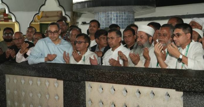 বিএনপির চেয়ারম্যান তারেক রহমান রাত ৯ টা ৫ মিনিটে সিলেটের হযরত শাহজালাল (রাঃ) মাজার জিয়ারত শেষে নফল নামাজ আদায় করেছেন। তিনি এর আগে রাত ৮ টা ৪ মিনিটে সিলেট বিমানবন্দরে অবতরণ করেন।