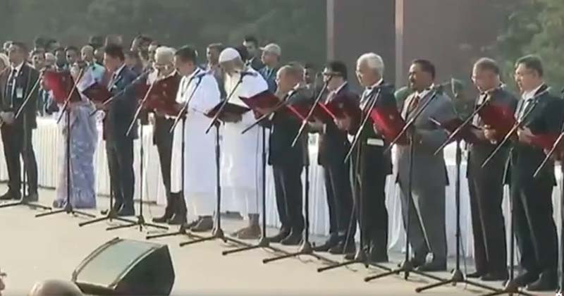 ঢাকাঃ রাষ্ট্রপতি মো. সাহাবুদ্দিন আজ বিকেল ৪টায় জাতীয় সংসদ কমপ্লেক্সের দক্ষিণ প্লাজায় তারেক রহমান এবং তাঁর নতুন মন্ত্রীদের শপথ বাক্য পাঠ করান। প্রথমে তিনি বিকেল ৪টা ১২ মিনিটে তারেক রহমানকে প্রধানমন্ত্রী হিসেবে শপথবাক্য পাঠ করান। এরপর পর্যায়ক্রমে বিকেল ৪টা ১৮ মিনিটে মন্ত্রী ও পরে ৪টা ২৬ মিনিটে প্রতিমন্ত্রীদের শপথবাক্য পাঠ করানো হয়।