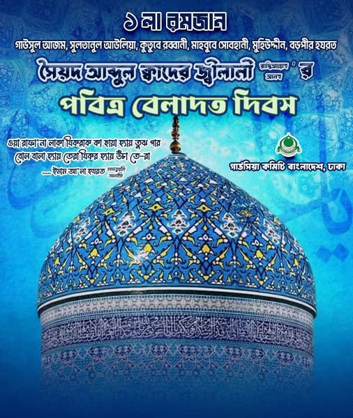 নিউজ ডেস্কঃ অলিকুল শিরোমণি, মাহবুবে সোবহানি-কুতুবে রাব্বানী -গাউসে সামদানি-কিন্দিলে নুরানি-নুরে ইয়াজদানী গাউসুল আযম, পীরানে পীর, মীর মহিউদ্দিন হযরত শেখ সৈয়্যদ শায়খ আব্দুল কাদের জিলানী (রাদিআল্লাহু তাআ’লা আনহু)র পবিত্র শুভ বেলাদাত শরীফ।