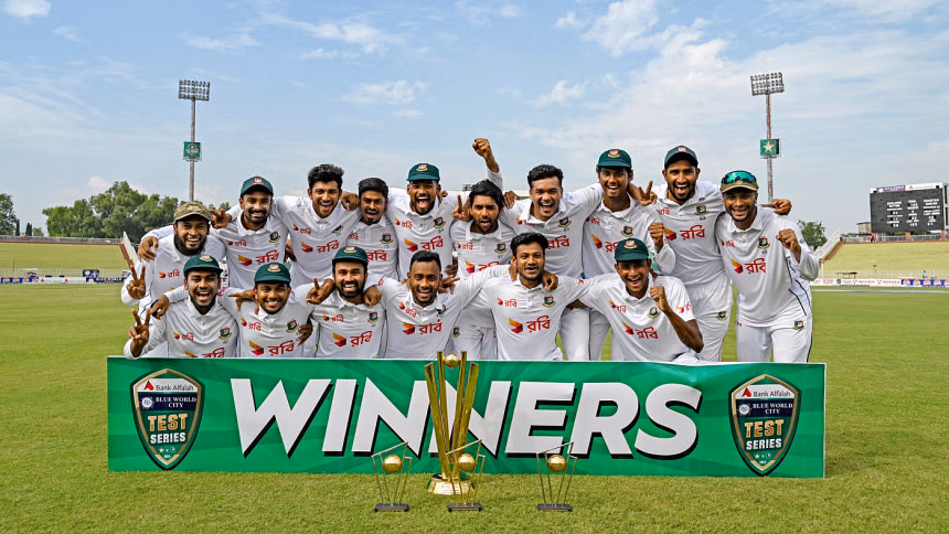 মঙ্গলবার রাওয়ালপিন্ডিতে দ্বিতীয় টেস্টে পাকিস্তানকে ৬ উইকেটে হারায় বাংলাদেশ। দুই ম্যাচ টেস্ট সিরিজের দুটিই জিতে শক্তিশালী প্রতিপক্ষকে হোয়াইটওয়াশ করে নাজমুল হোসেন শান্তর দল। এবারই প্রথম পাকিস্তানকে টেস্ট সিরিজে হারাল বাংলাদেশ। দেশের বাইরে ওয়েস্ট ইন্ডিজ ও জিম্বাবুয়ের পর জিতল তৃতীয় টেস্ট সিরিজ। প্রতিপক্ষ, প্রেক্ষাপট বিচার করলে এই সিরিজ জয় নিশ্চিতভাবেই সবার উপরে রাখা যায়।