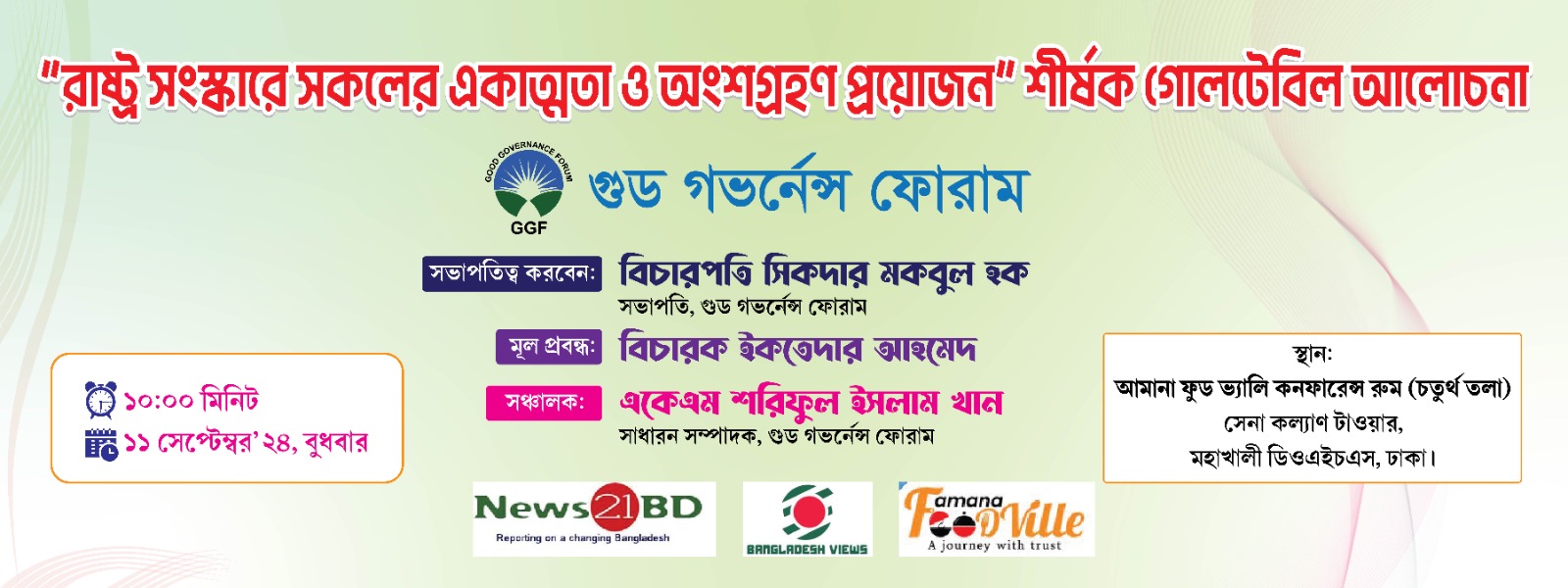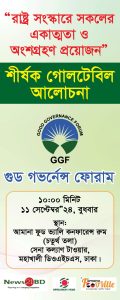উক্ত গোলটেবিল আলোচনাটি সঞ্চালনা করবেন শরিফুল ইসলাম খান, সাধারণ সম্পাদক, গুড গভর্নেন্স ফোরাম।