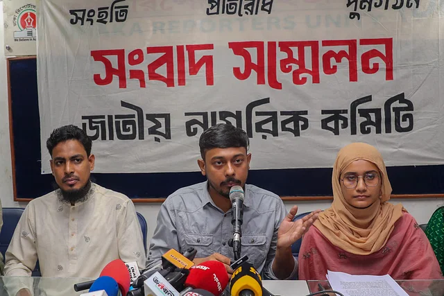 শনিবার বিকেলে ঢাকা রিপোর্টার্স ইউনিটিতে আয়োজিত এক সংবাদ সম্মেলনে লিখিত বক্তব্যে এসব বিষয় তুলে ধরেছে জাতীয় নাগরিক কমিটি। ছাত্র-জনতার অভ্যুত্থানের শক্তিকে সংহত করে দেশ পুনর্গঠনের লক্ষ্যে ৮ সেপ্টেম্বর আত্মপ্রকাশের পর শনিবারই প্রথম সংবাদ সম্মেলন করেছে এই কমিটি। অনুষ্ঠানে সাংবাদিকদের বিভিন্ন প্রশ্নের জবাব দেন জাতীয় নাগরিক কমিটির আহ্বায়ক নাসীরুদ্দীন পাটওয়ারী, সদস্য সচিব আখতার হোসেন ও মুখপাত্র সামান্তা শারমিন।