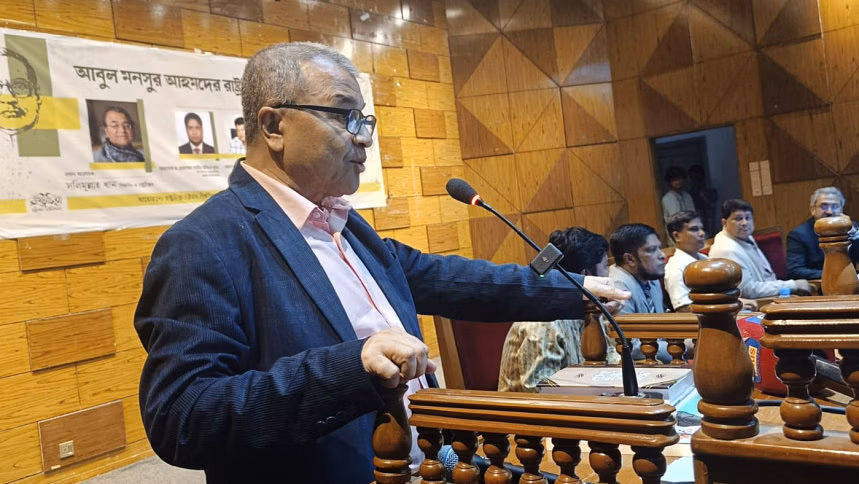 সোমবার চট্টগ্রাম বিশ্ববিদ্যালয়ে ‘আবুল মনসুর আহমদের রাষ্ট্রচিন্তা: প্রেক্ষাপট গণ-অভ্যুত্থান’ শীর্ষক এক আলোচনা সভায় তিনি এ মন্তব্য করেন। রাষ্ট্রচিন্তার আয়োজনে এ সভা অনুষ্ঠিত হয়। বেলা আড়াইটা থেকে সন্ধ্যা সাড়ে ছয়টা পর্যন্ত এ সভা চলে।