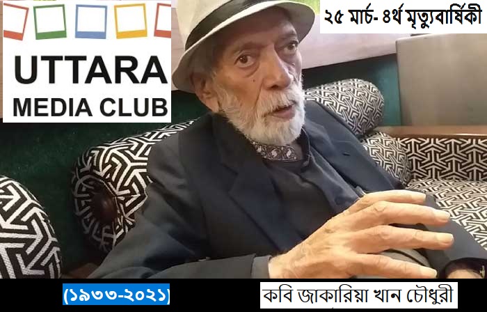 ঢাকাঃ বাংলাদেশ সরকারের সাবেক উপদেষ্টা (মন্ত্রী), কারাবরণকারী ভাষাসৈনিক, মহান মুক্তিযুদ্ধের অন্যতম সংগঠক, দৈনিক মানবকণ্ঠের প্রকাশক ও প্রধান সম্পাদক, উত্তরা মিডিয়া ক্লাবের সাবেক সভাপতি কবি জাকারিয়া খান চৌধুরীর আজ ২৫ মার্চ ৪র্থ মৃত্যুবার্ষিকী। মরহুমের রুহের মাগফেরাত কামনা করে তাঁকে গভীর শ্রদ্বার সাথে স্মরণ করছেন দেশবাসী।