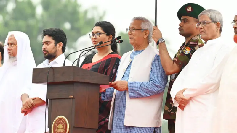 নিউজ ২১ ডেস্কঃ মঙ্গলবার জাতীয় সংসদ ভবনের দক্ষিণ প্লাজার অনুষ্ঠানমঞ্চ থেকে অন্তর্বর্তী সরকারের প্রধান উপদেষ্টা অধ্যাপক মুহাম্মদ ইউনূস ঘোষণাপত্র পাঠ করেন।