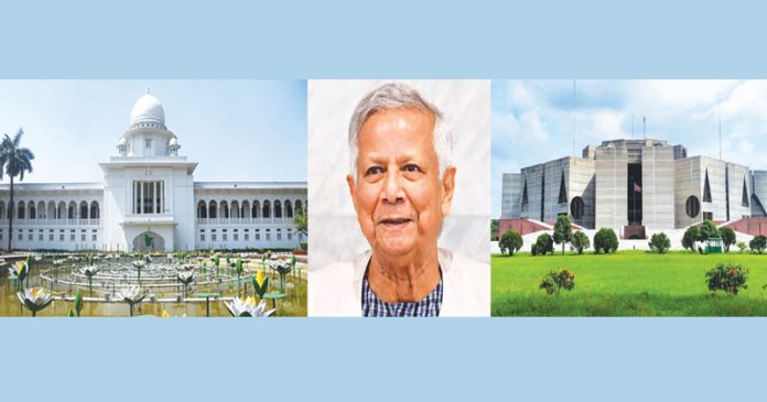 সংবিধানে ‘তত্ত্বাবধায়ক সরকারব্যবস্থা’ পুনর্বহালের রায় দিয়েছেন সুপ্রিম কোর্ট। দীর্ঘ রিভিউ পিটিশন শুনানি শেষে গতকাল বৃহস্পতিবার প্রধান বিচারপতি ড. সৈয়দ রেফাত আহমেদ নেতৃত্বাধীন আপিল বিভাগীয় বেঞ্চ ঐতিহাসিক এ রায় দেন। এর ফলে ‘চতুর্দশ জাতীয় সংসদ নির্বাচন’ হবে তত্ত্বাবধায়ক সরকারের অধীন। তবে ফেব্রুয়ারিতে আসন্ন ত্রয়োদশ জাতীয় সংসদ নির্বাচন অনুষ্ঠিত হবে অন্তর্বর্তীকালীন সরকারের অধীনেই। এর ফলে মৃত্যুদ-প্রাপ্ত হাসিনা সরকারের বাতিল করা তত্ত্বাবধায়ক সরকারব্যবস্থা যেমন সংবিধানে পুনর্বহাল হলো, সেই সঙ্গে অবসান ঘটলো ত্রয়োদশ জাতীয় সংসদ নির্বাচন কার অধীনে হবে- এমন প্রশ্নেরও। সুপ্রিম কোর্ট তার আদেশে বহুল আলোচিত নির্বাচনকালীন নির্দলীয় তত্ত্বাবধায়ক সরকারব্যবস্থা বাতিলের রায় অবৈধ ঘোষণা করেন। সেইসঙ্গে ত্রয়োদশ সংশোধনী বৈধ ঘোষণা করে সংবিধানে তত্ত্বাবধায়ক সরকারব্যবস্থা পুনর্বহাল করেন। রায়ের পর্যবেক্ষণে সুপ্রিম কোর্ট বলেছেন, তত্ত্বাবধায়ক সরকারব্যবস্থা বাতিলের অতীতের রায় ছিল কলঙ্কিত ও একাধিক ত্রুটিতে ত্রুটিপূর্ণ।