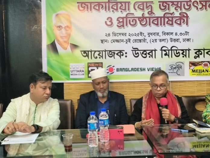 নিউজ২১ডেস্কঃ উত্তরা মিডিয়া ক্লাবের ১৩ তম প্রতিষ্ঠা বার্ষিকী অনুষ্ঠানের পাশাপাশি সরকারের সাবেক উপদেষ্টা মানবকন্ঠের প্রকাশক প্রধান সম্পাদক ক্লাবের প্রয়াত সভাপতি বীর মুক্তিযোদ্ধা কবি জাকারিয়া চৌধুরীর ৯৫ তম জন্মবার্ষিকী ও ক্লাবের অপর প্রতিষ্ঠাতা সভাপতি বিশিষ্ট সাংবাদিক রবীন্দ্র গবেষক জনাব আমিনুল ইসলাম বেদুর ৮৫ তম জন্মবার্ষিকী অনুষ্ঠিত হয়েছে।
